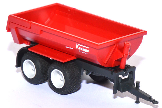 Die Großflächenlandwirtschaft, der Tiefbau, aber auch Landschaftsbau und Kommunalbetriebe setzen immer öfter auf die Halfpipe-Konstruktion von Krampe. WIKING realisierte den HP20, der als funktionelle Miniaturisierung eine sinnvolle Bereicherung facettenreicher Themenfelder im Maßstab 1:87 bedeutet. Nach dem Motto ""Qualität auf Rädern"" produziert das münsterländische Unternehmen Krampe aus Coesfeld-Lette bereits seit 1983 Wannenkipper für die Land- und Forstwirtschaft, die Bauindustrie sowie für Kommunal- und Landschaftsbaubetriebe. Die Halbrundmulde übernahm Krampe aus dem Lkw-Bereich als durchaus formal harmonisch konzeptionierte Konstruktion. Durch den Wegfall der Längs- und Querträger hat die „Halfpipe“ ein niedrigeres Eigengewicht im Vergleich zur herkömmlichen Kippmulde. Dies erhöht die Nutzlast des Fahrzeuges – das zulässige Gesamtgewicht liegt beim Vorbild bei 20 Tonnen. Die Vorteile im Alltagsbetrieb sind augenfällig: Das Schüttgut rutscht bei der Verladung in einem flacheren Winkel über die Muldenwand. Beim Transport von „dicken Brocken“ wie Findlingen wird die Ausbeulung der Mulde verhindert. Die runde Muldenform verhindert überdies in den Muldenecken verbleibende Schüttgüter - die Ladung rutscht beim Abkippvorgang automatisch zur Muldenmitte. Diese Zwangszentrierung verbessert zusätzlich die Standsicherheit beim Abkippen. WIKING bildete die Hydraulikzylinder an der Stirnwand der Halbrundmulde ebenso vorbildgerecht nach wie die übrigen Details von Fahrgestell und Mulde. Damit ist abermals ein Höchstmaß an Funktionalität in 1:87 gewährleistet. (Quelle: Wiking)