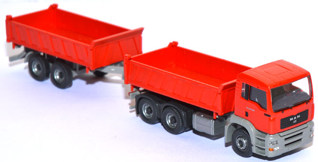 MAN TGA 26.480 Dreiseitenkipperlastzug mit Tandemanhänger verkehrsrot