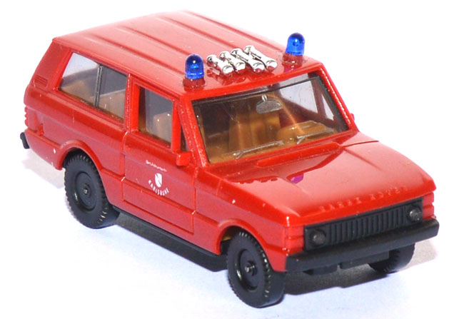 Der erste Modelltyp des Range Rover wird heute auch gerne als „Range Rover Classic“ bezeichnet. Er wurde in dieser ursprünglichen Form von 1970 immerhin bis Februar 1996 hergestellt und verkauft, dabei jedoch technisch ständig weiterentwickelt. Trotz seiner komfortablen Innenausstattung und seines straßentauglichen Erscheinungsbildes ist der Range Rover Classic auch ohne Modifikationen ein sehr geländetaugliches Fahrzeug. Hier ein Einsatzfahrzeug der Berufsfeuerwehr Karlsruhe. (Quelle: Herpa)